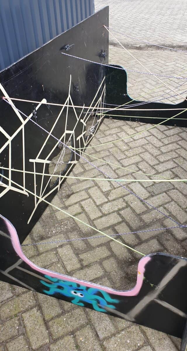 Griezelig hoor al die spinnen, het is net alsof ze over me heen kruipen. Dit spel vraagt een beetje lenigheid. Lukt het jouw om door dit web te kruipen zonder de spinnen of de draden aan te raken? Dit spel is ook te huur met ons XL Circuit Hout.
