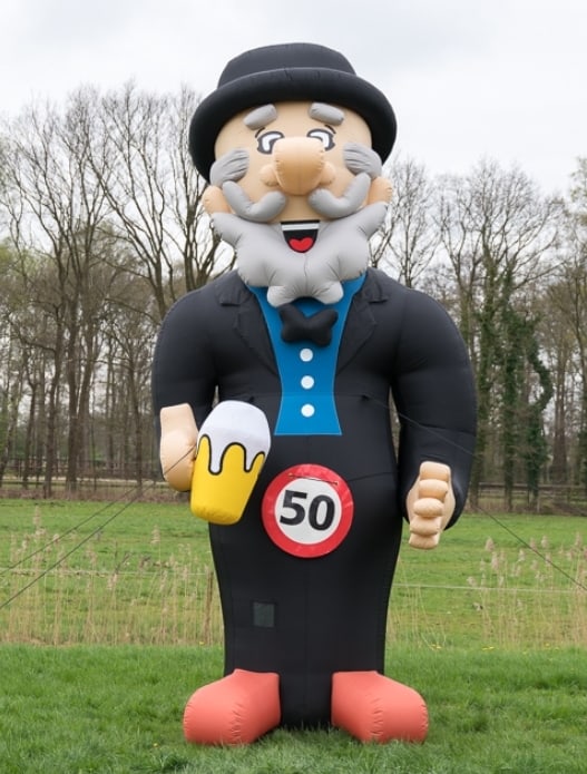 Onze Abraham met bolhoed laat iedereen in de straat zien dat de jarige Abraham heeft gezien. Opvallen lukt met een afmeting van 4,3m zeker! Deze Abraham heeft zijn zondagse pak aan, bolhoed op en een koud pilsje in de hand. Bij deze pop hebben wij een tal van leeftijd banners. U huurt eenvoudig een leuk spandoek en tuinspot mee om extra aandacht te genereren.