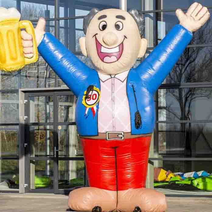 Verras een Abraham met deze vrolijke pop van maar liefst 4,0 meter in zijn tuin of oprit. Deze pop is al helemaal in de feeststemming. Hij heeft een vrolijk outfit en een lekker pilsje in de hand. Met zijn afmeting van 4,0 meter valt hij zeker op. Deze Abraham heeft een badge op de borst welke te verwisselen is voor tal van leeftijden. Wij hebben ook een spandoek en tuinspot welke u voordelig kunt bij huren.