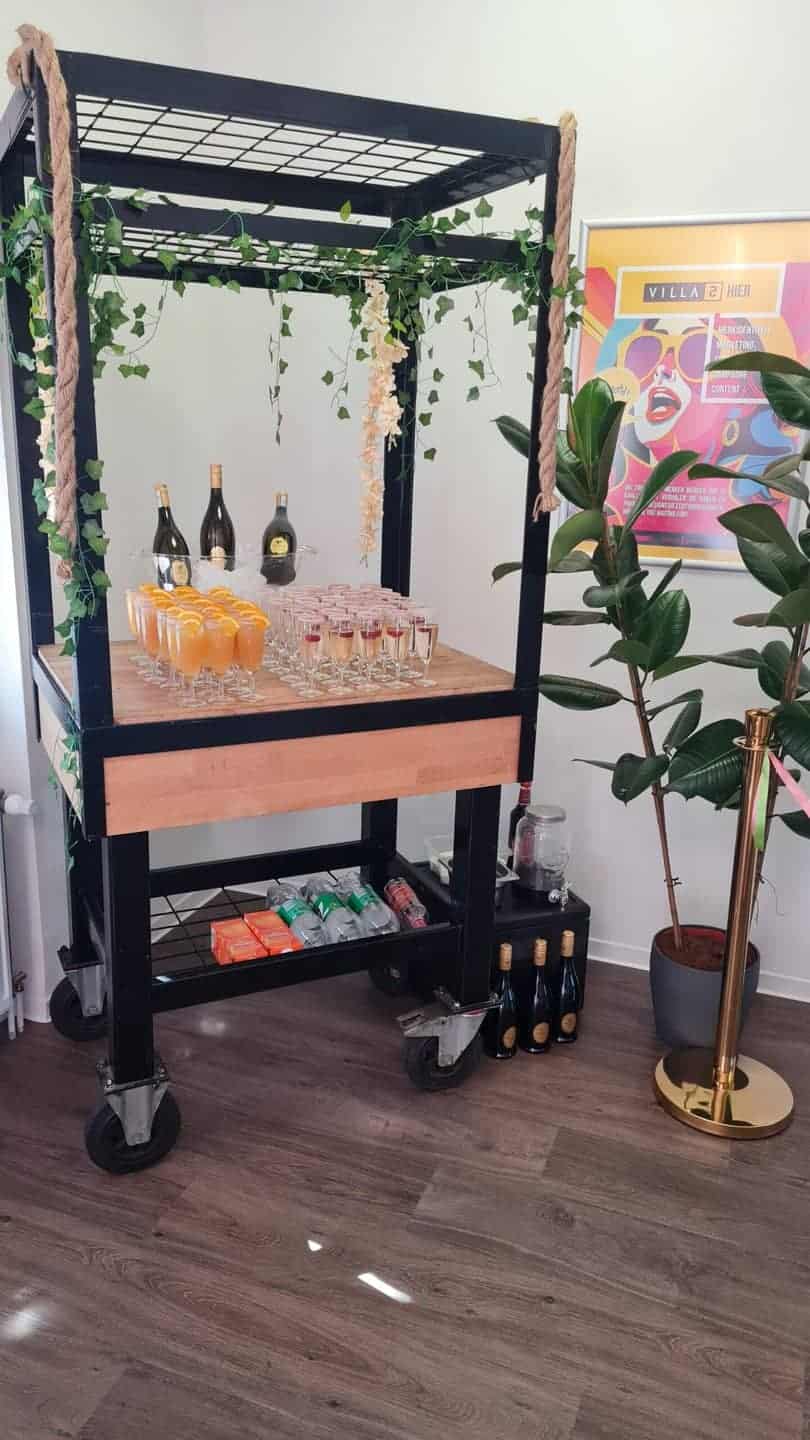 Deze robuuste Butcher Stand is een graag geziene gast op feest of evenement. Door zijn compacte afmeting is hij makkelijk te plaatsen op plekken waar niet veel ruimte is. De Butcher Stand biedt echter vele opties. Denk aan BBQ, poffertjes, nacho’s, popcorn, wafels etc. Ook leent hij zich uitstekend als stand voor welkomstdrankjes zoals koffie, thee, prosecco of mimosa’s.