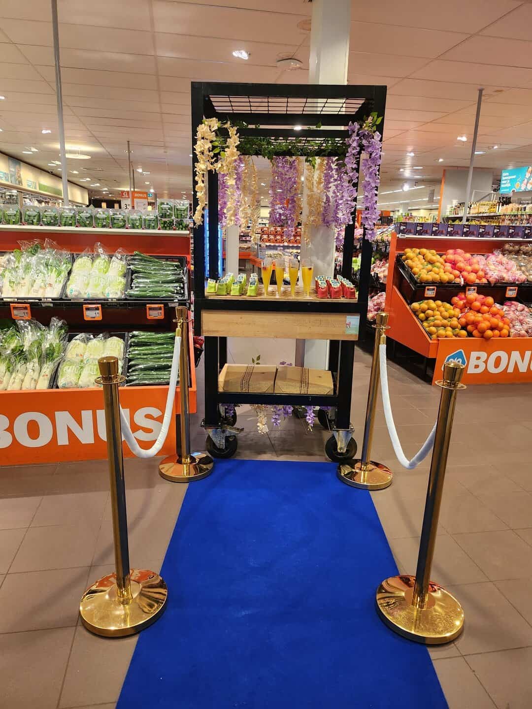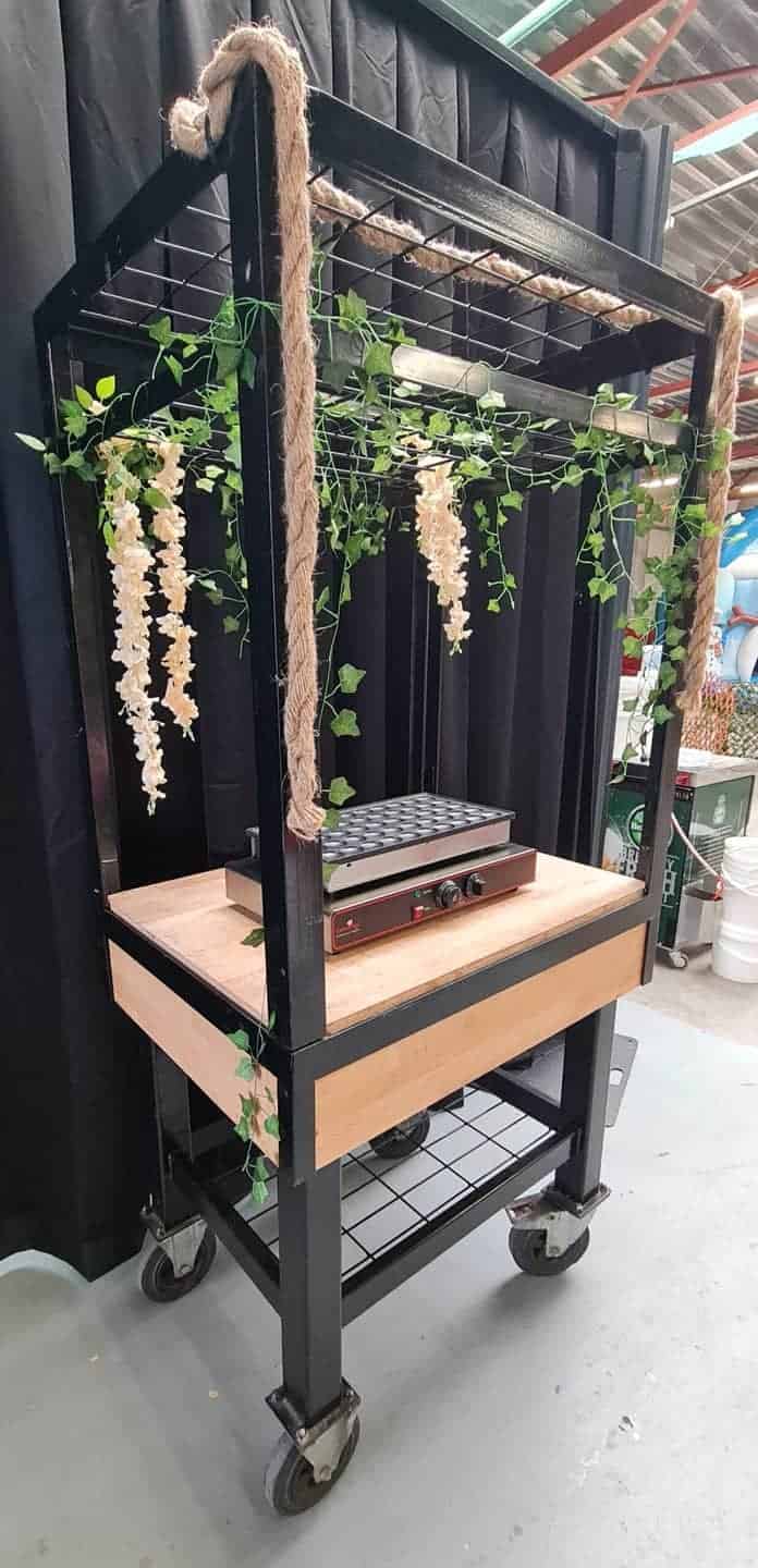 Deze robuuste Butcher Stand is een graag geziene gast op feest of evenement. Door zijn compacte afmeting is hij makkelijk te plaatsen op plekken waar niet veel ruimte is. De Butcher Stand biedt echter vele opties. Denk aan BBQ, poffertjes, nacho’s, popcorn, wafels etc. Ook leent hij zich uitstekend als stand voor welkomstdrankjes zoals koffie, thee, prosecco of mimosa’s.