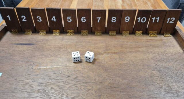 Bij Keer Maar Om gooi je met de twee dobbelstenen en probeer je elk cijfer dicht te doen. Speel jij elk cijfer weg? Dit spel is in extra grote uitvoering met duidelijke cijfers en xl dobbelstenen.