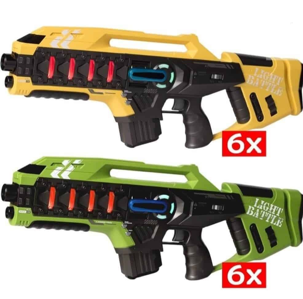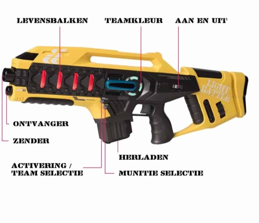 Nieuw in het assortiment: Lasergame! Deze set is samen te stellen uit 6, 8, 10 of 12 anti cheat lasergame geweren waar je uren lang speelplezier mee kunt hebben. Lekker actief lasergamen met je vriendjes en vriendinnetjes. Deze set leent zich uitstekend voor tuin, bos of speeltuin. De geweren maken gebruik van onschadelijke en onzichtbaar infrarood licht wat ze 100% veilig maakt. Dit maakt een kinderfeestje echt helemaal af.