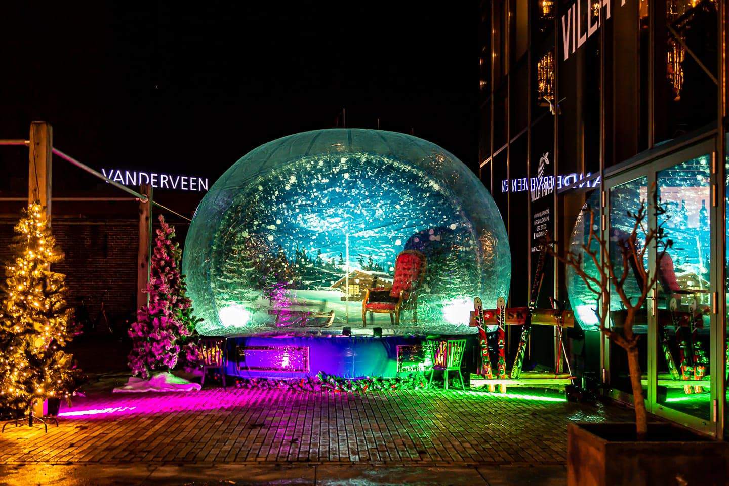 Vanaf nu in ons assortiment de Snowglobe. Wat een sensatie is dit. Deze Snowglobe heeft een afmeting van maar liefst 5,0 x 5,0 meter en is voorzien van een winterse backdrop, nepsneeuw en nepsneeuwballen. Naar gelang kunnen wij deze inrichten met diverse sfeerverlichting, een geluidssysteem en diverse kerstdecoratie. Beeld u de mogelijkheden eens in wat wij met deze Snowglobe voor u kunnen doen.