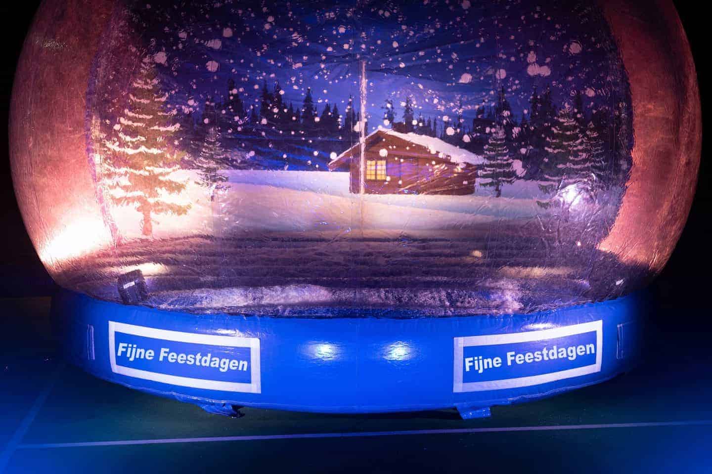 Vanaf nu in ons assortiment de Snowglobe. Wat een sensatie is dit. Deze Snowglobe heeft een afmeting van maar liefst 5,0 x 5,0 meter en is voorzien van een winterse backdrop, nepsneeuw en nepsneeuwballen. Naar gelang kunnen wij deze inrichten met diverse sfeerverlichting, een geluidssysteem en diverse kerstdecoratie. Beeld u de mogelijkheden eens in wat wij met deze Snowglobe voor u kunnen doen.