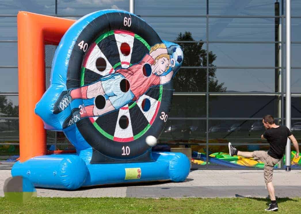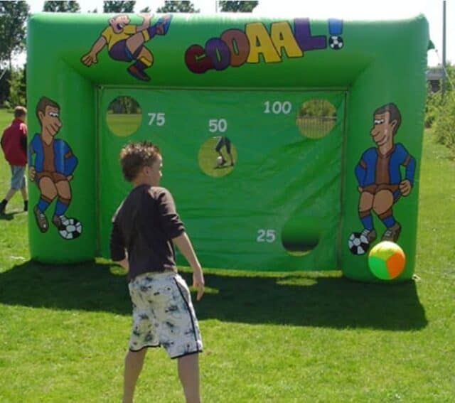 Ben jij de nieuwe Messi of Ronaldo? Test je skills met dit opblaasbare voetbal doel. Je kunt hem gewoon als doel gebruiken maar tevens ook als punten schieten met het afneembare zeil. Schiet jij hem in de 100? Leuk voor open dagen van voetbal verenigingen. Dit voetbal doel hebben wij zowel in een blauwe en een groene uitvoering.
