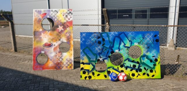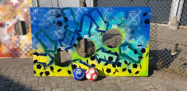 Deze super stoere voetbal doelen zijn speciaal voor ons gepimpt door LeukItem Waar het begon op pleintjes en veldjes kan men nu naar hartenlust punten scoren op deze doelen. Krijg jij hem in de 200?
